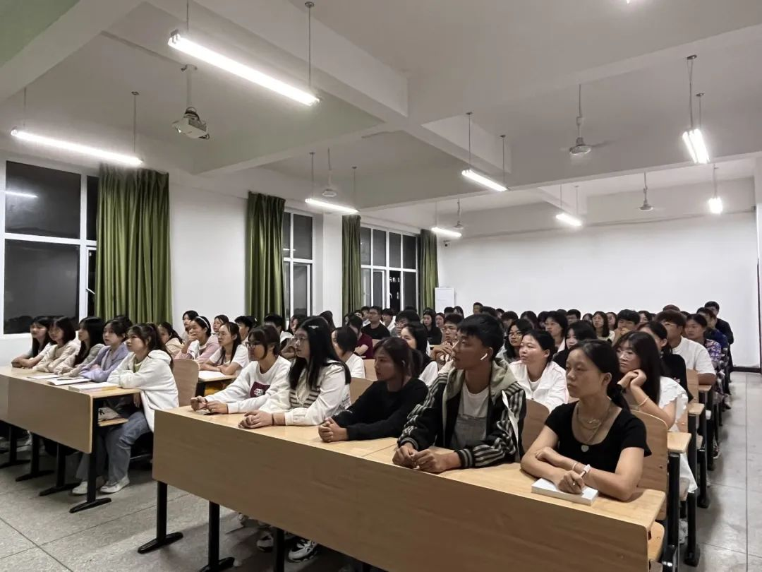 新学期第一次晚自习,学工助理为新生讲解设立早晚自习的意义,并利用晚自习时间开展讲文明、懂礼貌的主题班会,23级的新同学在学工助理的带领下看书、背单词、熟读法条,教室里学习氛围浓厚,良好的学习习惯逐渐养成。