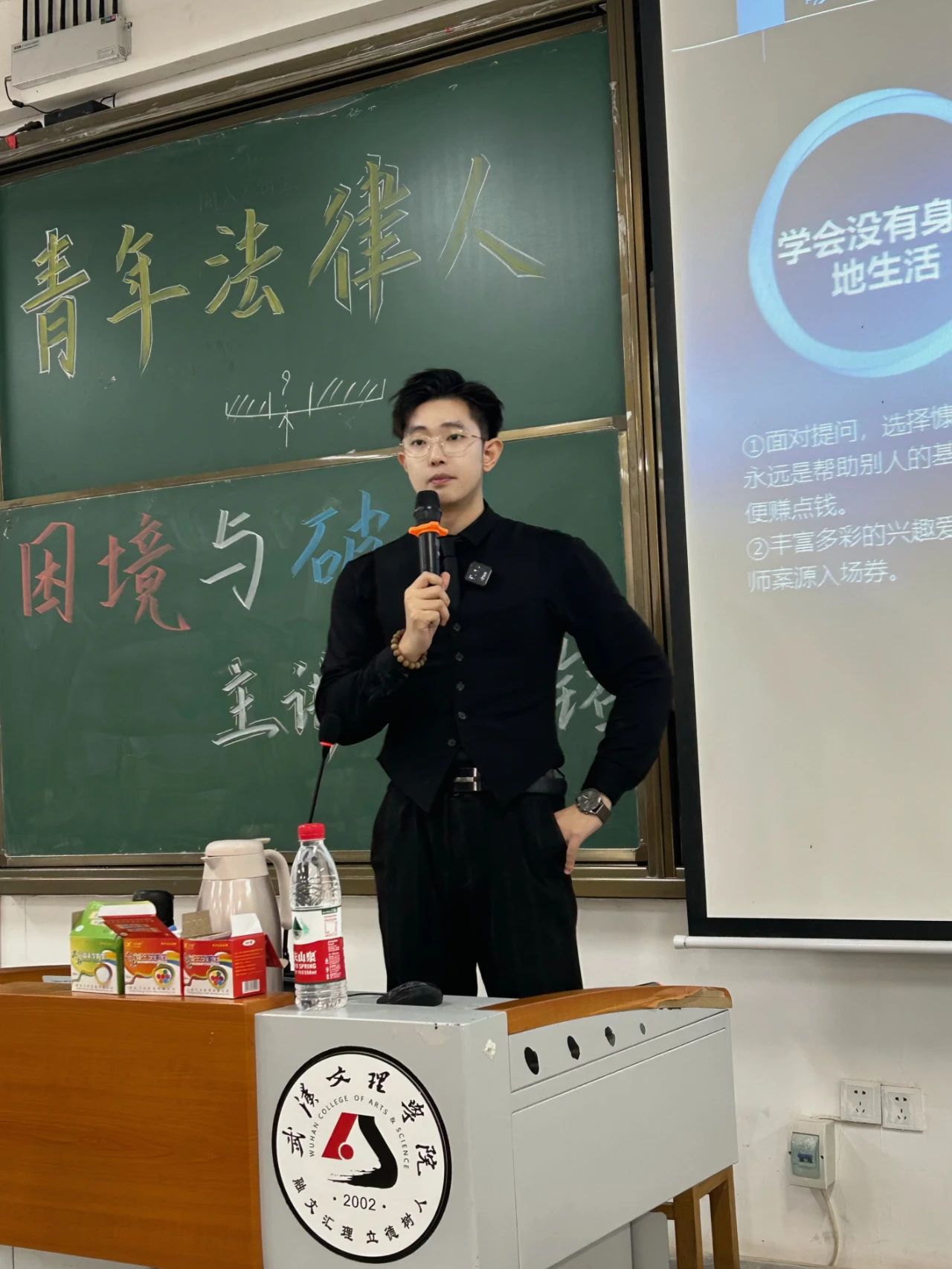 除此之外,对于青年法律人经常会面对的案源不足、就业初期开销大、心理压力艰巨等问题,张律师通过自身经历分享了独到的心得与想法:一是要专注自己,维持“钝感力”,对于法律人来说,“钝感力”绝不仅限于庭上,庭下的“钝感力”同样能起到不容小觑的作用;二是要学会没有“身份”地生活,作为一名青年法律人,应该学会放下身份,乐于助人以及本着“不信任不报价”的原则,与他人深入沟通和倾听他人想法;三是拥有被讨厌的勇气,人是千万个瞬间的组合,他目前热火朝天的互联网行业为例,提出了“上天给予每个人的勇气是一样的”的观点,鼓励同学们勇于尝试,敢于表达自己的立场观点,勇敢的人先享受世界。
