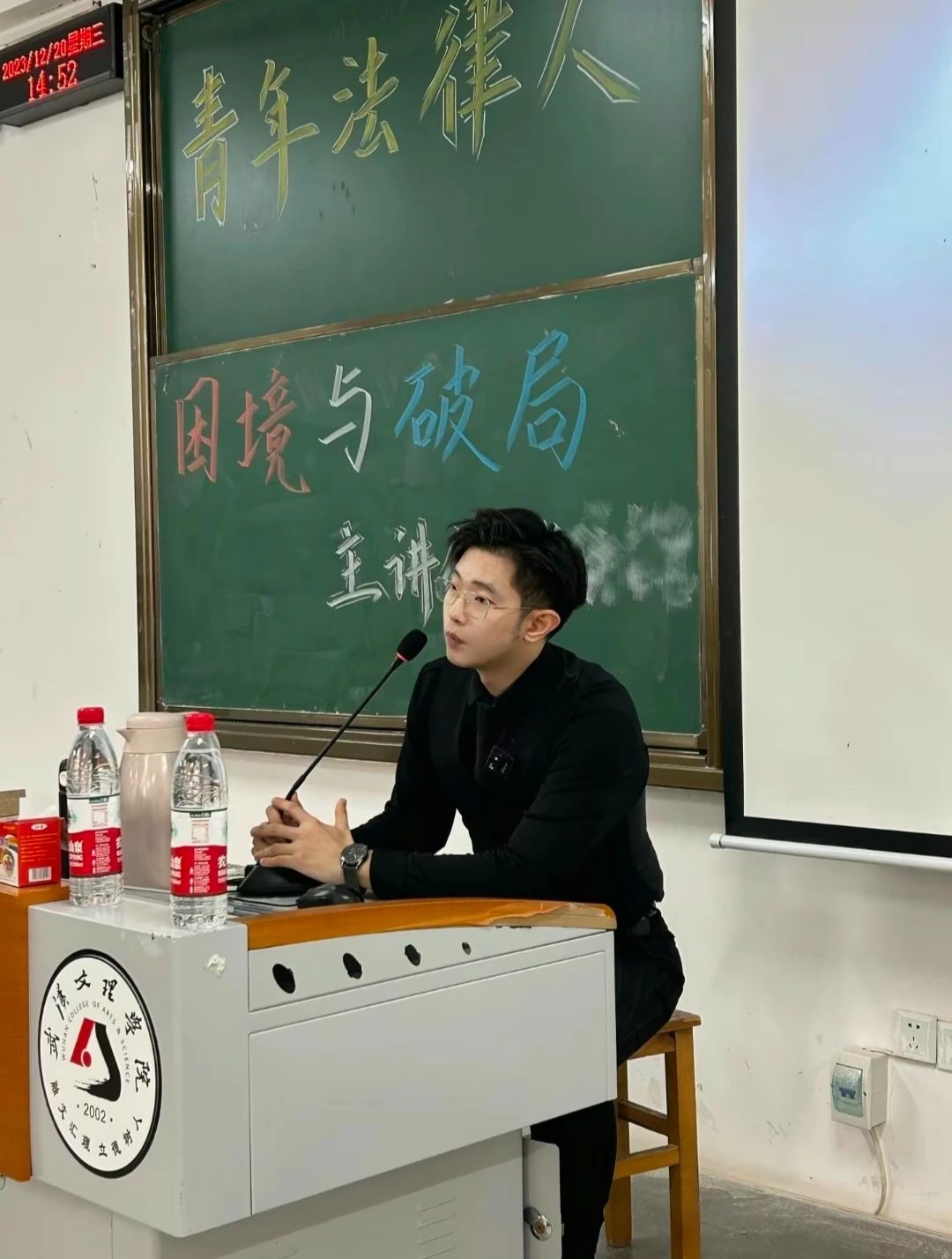 青年法律人是法律队伍中最重要的力量之一,是法律事业的未来和希望。在当前新形势下,作为新时代青年法律人,在拥有更多机遇的同时,也面临着人生发展的瓶颈与困境。为突破此类困境,帮助青年员工树立正确的职业理想,努力开拓创新,不断提高自身专业能力,2023年12月20日,伟德bv国际体育官方网站在5-126教室举办《青年法律人的困境与破局》专题讲座。本次讲座特邀湖北予智律师事务所张辰铭律师,参与本次讲座的有伟德bv国际体育官方网站法学教师万天卉、万昭晖、22级辅导员柯静、23级辅导员谢红炼以及各年级法学专业员工。