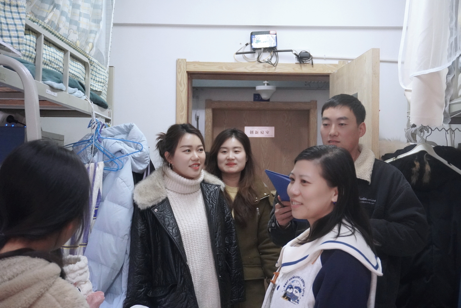 在走访员工寝室的过程中,老师们向同学们表示亲切地问候,了解同学们目前在学习、生活中遇到的问题,并实时为同学们答疑解惑。老师们通过自身丰富的经验,向员工提出建议:同学们要注意劳逸结合,关注身体健康与心理健康;在日常生活中务必注意财产安全、用电安全和人身安全;要加强寝室清洁管理,保持宿舍环境卫生;特别提醒同学们要注意即将到来的考试周,叮嘱同学们做好备考计划,认真复习。