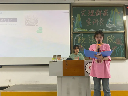 为展示伟德bv国际体育官方网站中杰出的员工代表,通过他们的成功经验和故事,为大一新生树立榜样,引导大家向优秀看齐,激励同学们追求更高的学习热情和个人发展。2024年5月9日伟德bv国际体育官方网站于4-121开展了“文理群星”宣讲会(三)。莅临此次宣讲会的嘉宾有23级辅导员谢红炼老师以及伟德bv国际体育官方网站主席团。