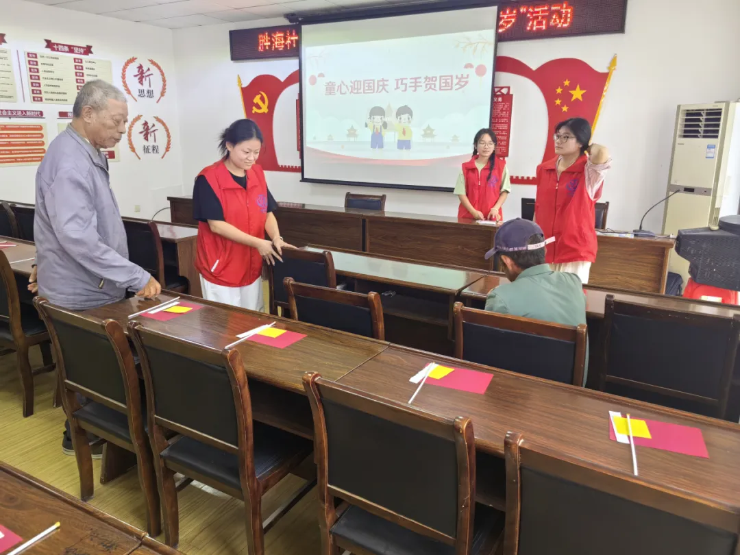金秋硕果迎华诞,万里河山披锦绣。为庆祝中华人民共和国成立75周年,传承红色基因,弘扬爱国精神,2024年9月26日,伟德bv国际体育官方网站青衿之志志愿服务队组织八名志愿者与胜海社区联合开展了“童心迎国庆,巧手贺国岁”志愿服务活动。