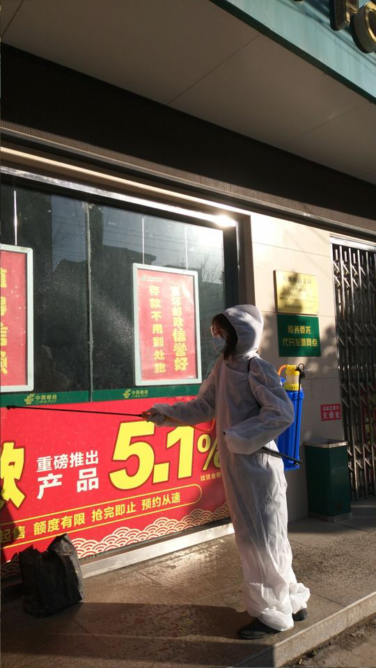 昝江同学家住薛集镇,她的爸爸昝雄伟是一名的邮递员,新冠病毒来势汹汹,1月23日继武汉封城后,各地纷纷开始进行防御工作。而邮政局作为薛集镇人流量相对较多的公共场所,也积极响应防疫工作,开始了全范围消毒,她的爸爸作为邮递员,负责邮政局大面积的消毒工作。因此,她来到邮局协助爸爸单位消毒,穿防护服用邮局打药桶喷雾84消毒液,对自动取款机……等进行全面消毒,防止人员感染,防疫无小事,能为防疫工作献出力量,她也感到很开心。
