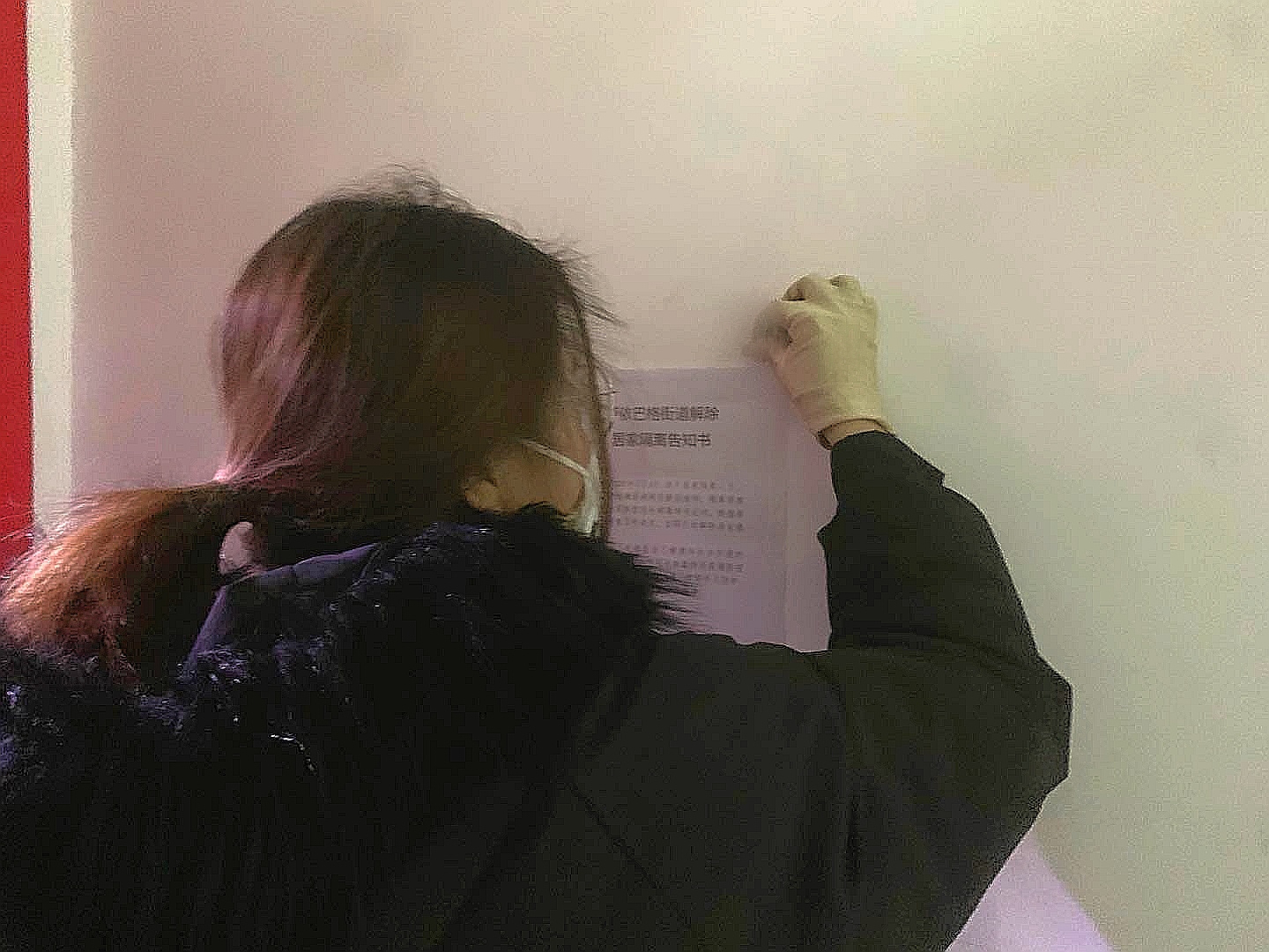 成为志愿者之后,她每天无偿地进行义务劳动,值班、拉网式排查、贴通告、帮隔离家庭倒垃圾、如有快递、菜肉送到时帮助其送到家中。虽然她没有参加任何社会组织或机构,只是帮社区物业做一点事,但她也为了共同抗疫做出了贡献。