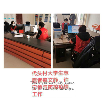 由于新型冠状病毒期间,寇文静同学的家乡政府为了能够有效的控制病毒,减少病毒对家乡人民的危害,村民委员会工作人员进行了进出人员的检查和掌控,而她也在2020年2月7日(从外地回家隔离14天,渡过潜伏期)正式成为吉林省白城市镇赉县大屯镇代头村村民委员会志愿者之一。