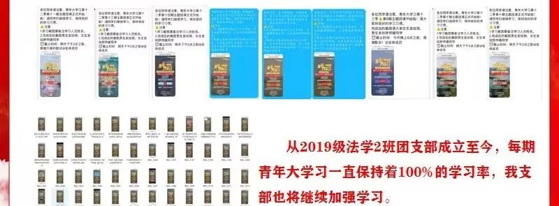 奋力奔跑,勇于追梦,是青年该有的姿态;向上向善,求真求实,是青年应有的精神。2021年度,2019级法学2班在党组织的感召下,奋发有为,发挥了先锋模范作用,经过一年的努力,最终荣获“武汉市五四红旗团支部”称号。在拥党爱国风气的渲染下,2019级法学2班班委干部积极组织开展爱国主义教育班会、各项党史教育活动、各类团日活动、志愿者服务以及团支部实践活动。从2019级法学2班团支部成立至今,每期青年大学习一直保持着100%的学习率,浓烈的拥党爱国风气渲染了整个班级,2019级法学2班满怀一腔热血,用行动谱写青春最美的华章。