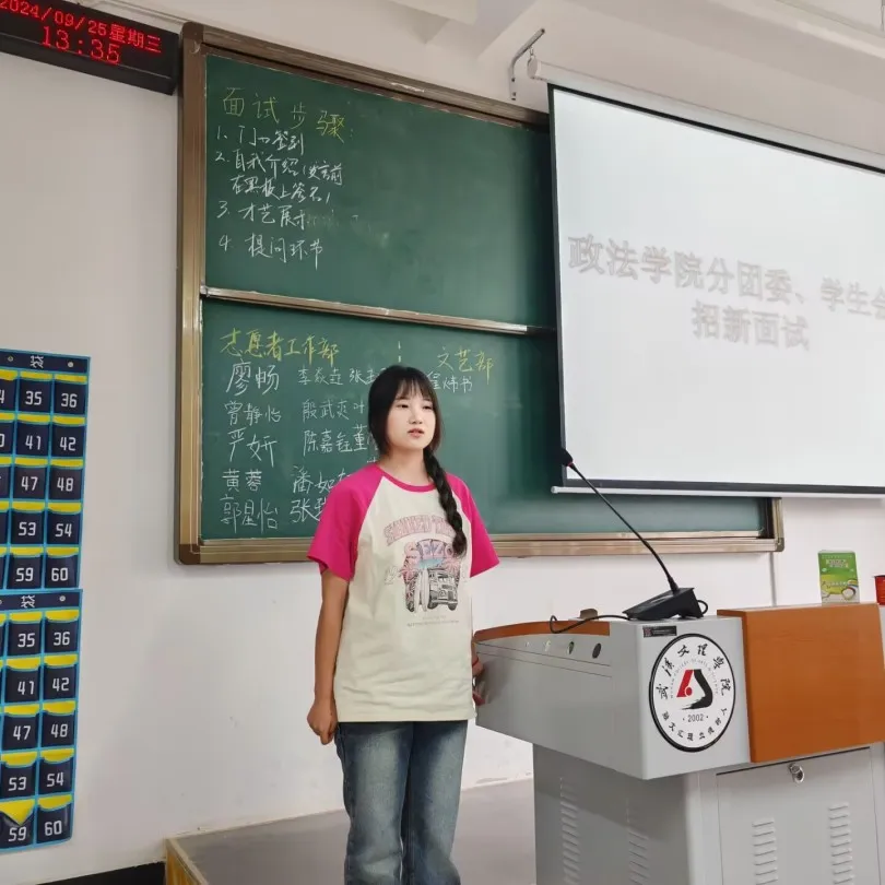 十年磨一剑,今朝试锋芒。台上,同学们自信大方地做着自我介绍;台下,部长、主席们的问题也是接踵而至。面对评委的种种问题,同学们并没有感到慌乱,从容不迫地表达自己的想法,或慷慨激昂,或娓娓道来。在本次招新面试中,各位部长们看到了24级同学们的热情与才华,也感受到新生同学们在用自己的方式诠释着对团学的热爱与执着。