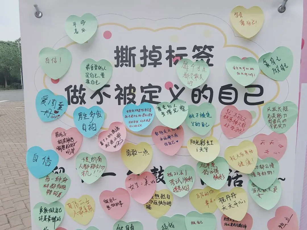 本次“拒绝定义之缚”心理活动中,同学们通过撕掉标签,把自己的想法和祝福写出来。来来往往的同学们将自己对于标签的看法和认识相互分享,认识到每个人都是独一无二的,不应被外界定义所束缚。最终,活动圆满结束。