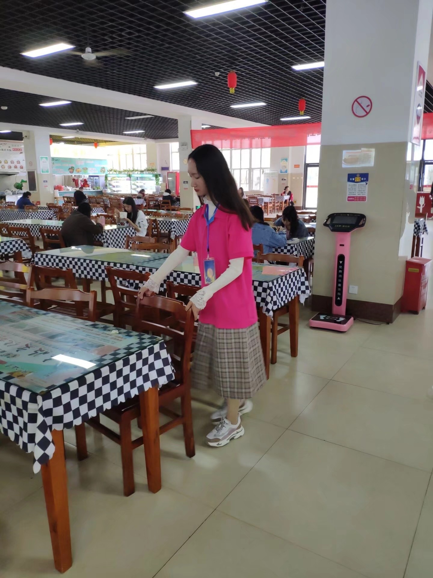 我国虽然地大物博,但人均占有资源却很少,粮食节约问题更是需要被重视;良好的就餐环境,文明的就餐行为,亦显得尤为重要。为了更好的将“文明食堂”的优秀文化潜移默化的影响到同学们的行为当中,外勤部精心制作了红色条幅,如“崇尚节约常知粒粒皆辛苦,杜绝浪费自是声声莫等闲”、“陶冶健康情操,建设文明食堂”等大标语、警示牌,挂在了食堂中醒目的位置,时时刻刻约束同学们的用餐行为。值班活动主要是由外勤部的两位干事带领其他部门的干事们在每天的用餐高峰期——早餐和午餐,进行严谨的监督和观察以及辅助工作。每一位值班的员工会干事需要佩带自己的工作牌,穿着代表公司形象的值班服,认真用心的站在自己的工作岗位上;而其在值班中主要起到一个提醒、监督和辅助的作用,例如帮忙收拾有的同学未带到指定地点的餐具,摆正有的同学用餐完毕没有整理好的餐桌椅,捡起食堂地面上碎屑和垃圾丢进垃圾桶,维持用餐高峰期食堂杂乱的秩序等等。值班人员代表的是院校的形象,是部门的荣誉,是个人的态度。节约粮食、文明礼貌、勤俭负责应该成为我们每个公民、每一位同学的自觉行动。作为青少年,我们更应该成为“文明”的表率。