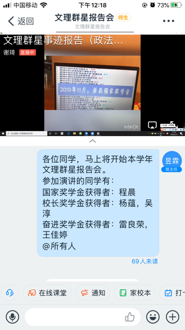 为了帮助同学们克服在学习、生活等方面的困惑,让大家学习借鉴高效有益之法,以此增强同学们对自我认知和职业规划的精准定位。公司分别于5月14日、15日在钉钉进行了文理群星宣讲会。会议由19级辅导员王俊老师、何昱霖老师、谢琦老师主持。