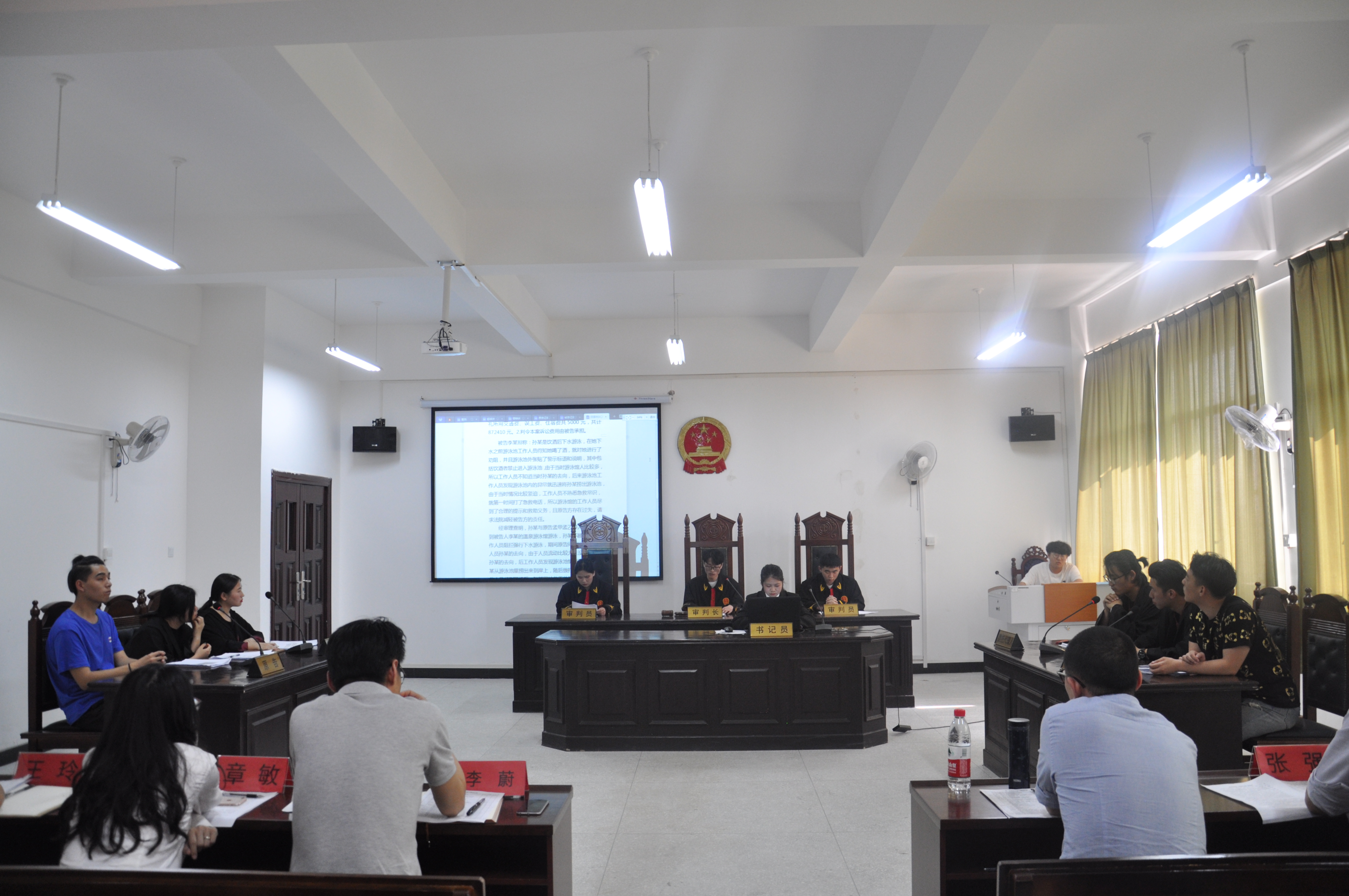 本次模拟法庭的案例为民事侵权纠纷,法官组由17级法学1班的同学担任,原告组由17级法学3班的同学担任,被告组由17级法学2班的同学担任。各班参赛选手准备充分,通过举证、质证、辩论、总结,呈现了一场完整的民事诉讼庭审。