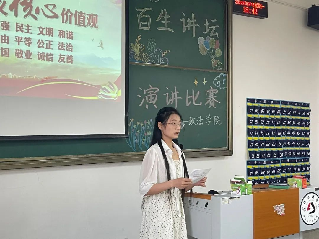几十年前鲁迅先生曾对中国青年说“摆脱冷气,只是向上走,不必听自暴自弃者留的话”,现如今在21世纪的新青年身上体现出了刚劲挺拔,不屈不挠的精神风貌。演讲者抬头挺胸,意气风发的走上讲台,他们不露一丝紧张之气,他们站在台上骄傲的讲述着中国的伟大发展历程,将理论演讲与生动实践相结合,用真挚的情感与热忱的情怀将满腔热血娓娓道来,他们越讲越激烈,越讲越动情,眼中,口中,心中充满了对祖国的崇敬之情。