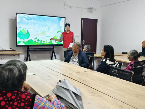 走进社区活动现场,普法宣讲环节座无虚席。在胜海社区的会议室里,先锋队成员站在大屏幕前,指着印着“人人有责”字样的环保主题画面,用通俗易懂的语言为居民讲解环保法规,从生活垃圾管理细则到生态保护相关条例,把原本严肃专业的法律条文,转化成贴合日常生活的通俗解读。青龙社区的宣讲则结合PPT展示,当屏幕上出现被污染的河流与修复后绿意盎然的青山对比图时,不少居民露出惋惜与向往的神情,也更深刻地体会到“保护环境,法为后盾”的深层意义。