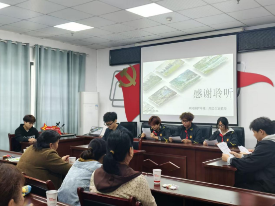 最让大家眼前一亮的是“模拟法庭”环节。新桥社区的活动室里,同学们分别扮演“法官”“律师”“当事人”,完整模拟“一节电池对环境造成危害”案件的审理流程。居民们围坐在周围,专注看着“庭审”有条不紊地推进,仿佛置身真实法庭现场,直观感受到破坏环境不仅要面临道德层面的谴责,更需承担相应的法律责任。不少居民看完后纷纷感慨,没想到污染环境的后果如此严重,法律对环保的规范竟这般细致。