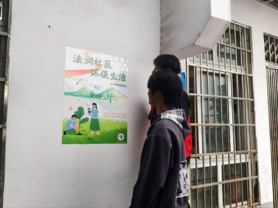 活动正式开展前,先锋队的同学们已提前抵达社区,忙着张贴“法润社区·环保生活”主题海报。胜海社区的白墙下、青龙社区的砖石墙旁,都留下了他们认真忙碌的身影,色彩明快的海报很快吸引居民驻足,大家路过时常常驻足讨论,对即将开展的活动充满期待。