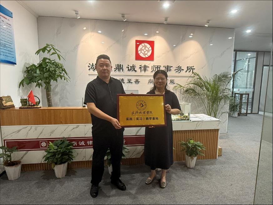 为深入贯彻依法治国基本方略,加快高素质法治人才培养步伐,拓宽法学学子实习实践与就业渠道,2025年6月20日下午,伟德bv国际体育官方网站常务副经理陈海峰率法学系主任罗平、理论法学教研室主任江莲及教师王宇聪一行,赴湖北鼎诚律师事务所开展合作交流,并成功举行实习教学基地签约暨授牌仪式。湖北鼎诚律师事务所主任左光永律师、权益合伙人徐盼律师及在该所任职的公司2020级优秀毕业生李彩萍同学共同出席签约授牌仪式。