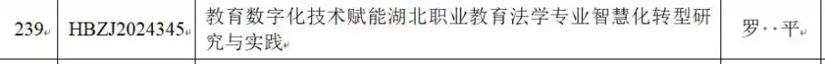 5月30日,湖北省中华职业教育社发布鄂社字〔2024〕7号文《关于湖北省中华职业教育社2024年度课题研究项目立项的通知》,伟德bv国际体育官方网站法学系主任罗平老师的课题《教育数字化技术赋能湖北职业教育法学专业智慧化转型研究与实践》获得立项!祝贺罗平老师!伟德bv国际体育官方网站也迎来了2024年度教科研课题开门红!