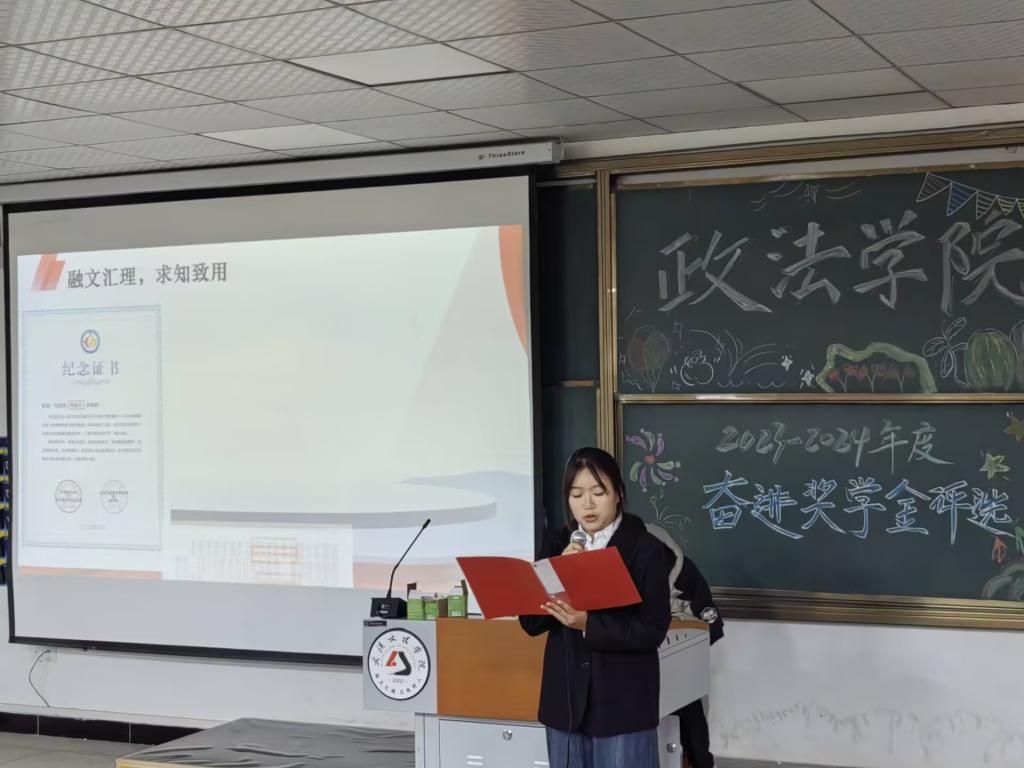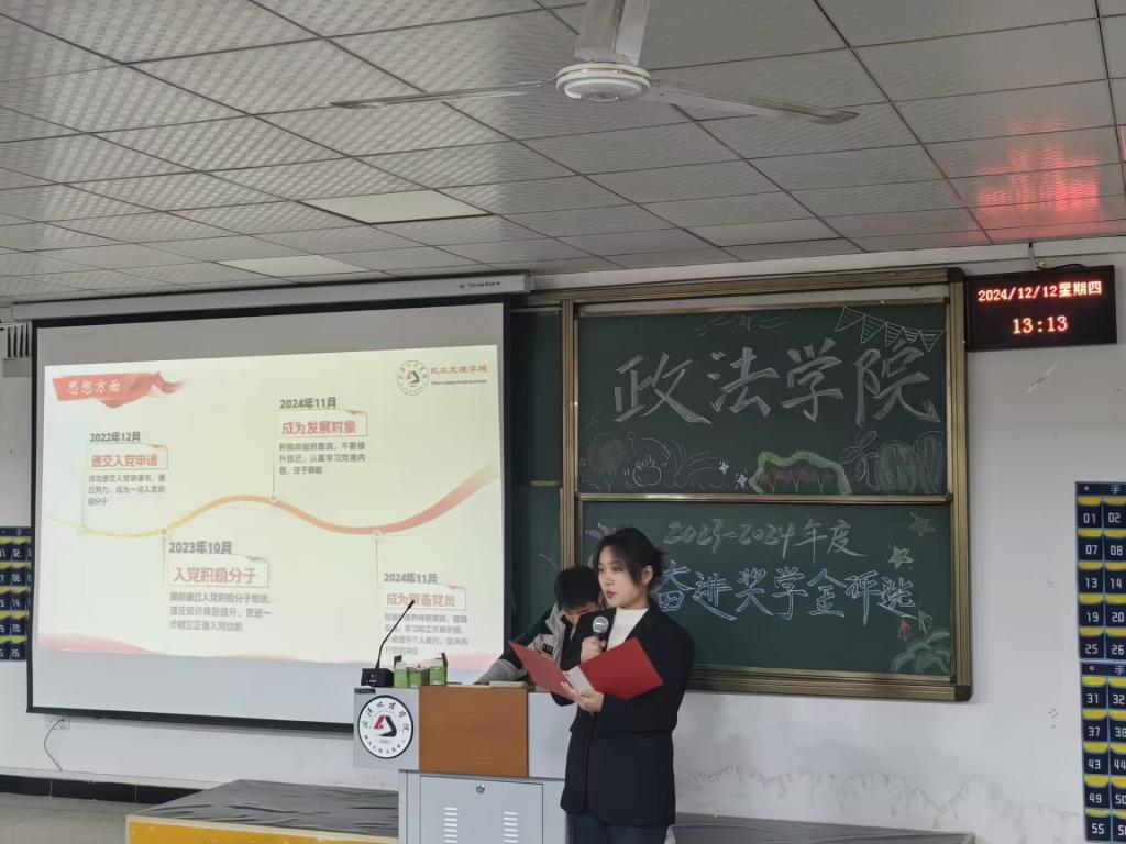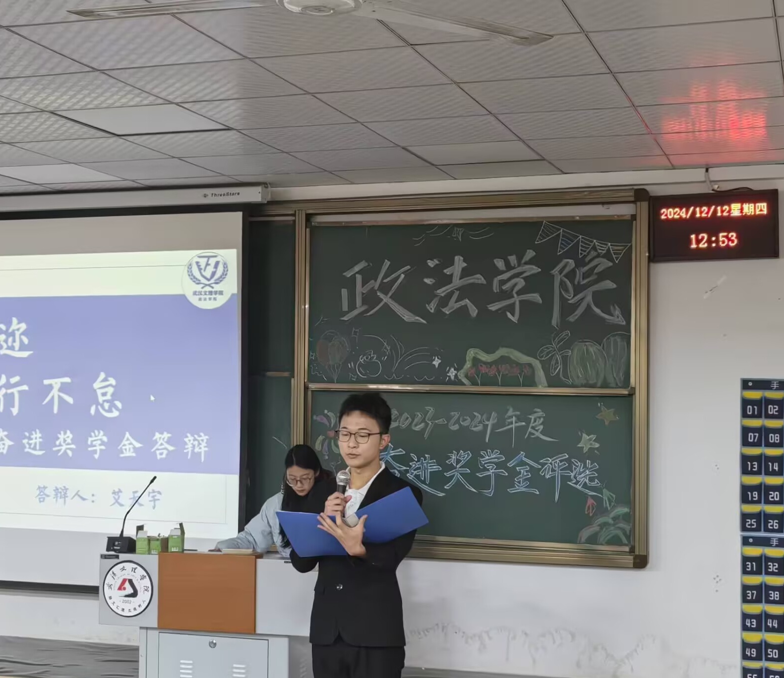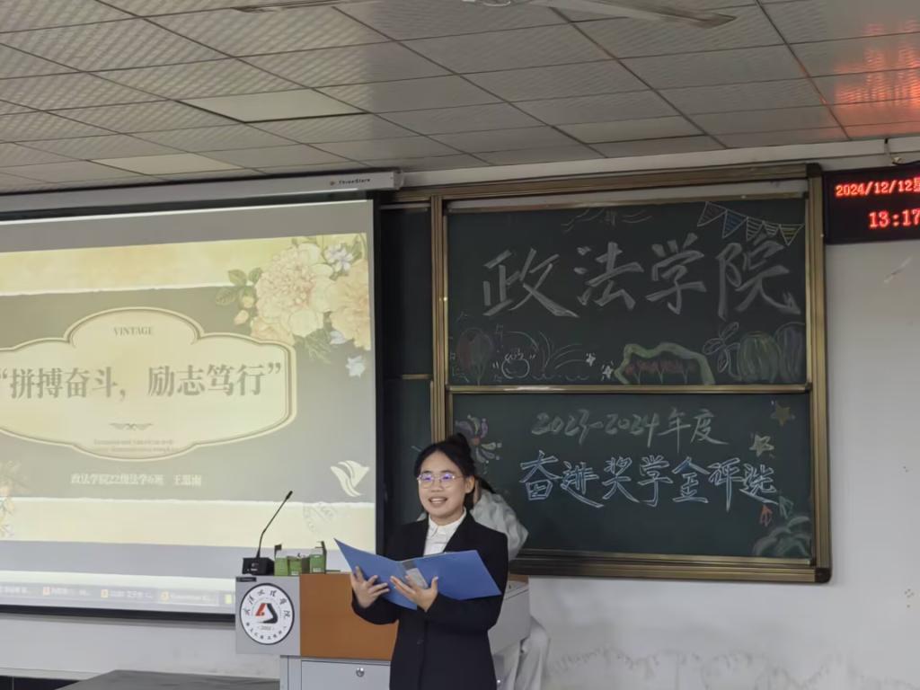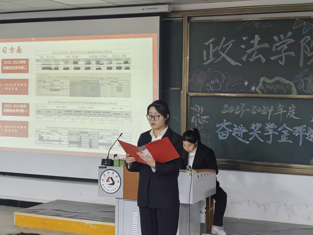 为激励德才兼备的政法学子,秉持自强不息之信念,砥砺努力拼搏之精神,坚守崇德向善之品德逐梦前行。2024年12月12日12:30,伟德bv国际体育官方网站于4-322隆重举办2023-2024学年奋进奖学金评选活动。出席本次活动的嘉宾有:伟德bv国际体育官方网站(原江汉大学文理公司)2008级优秀员工孙凡、伟德bv国际体育官方网站常务副经理陈海峰、党总支书记兼行政副经理程茜、法学系系主任罗平、公共管理系系主任马君、法学系副主任吴蕾以及各位教职工老师。