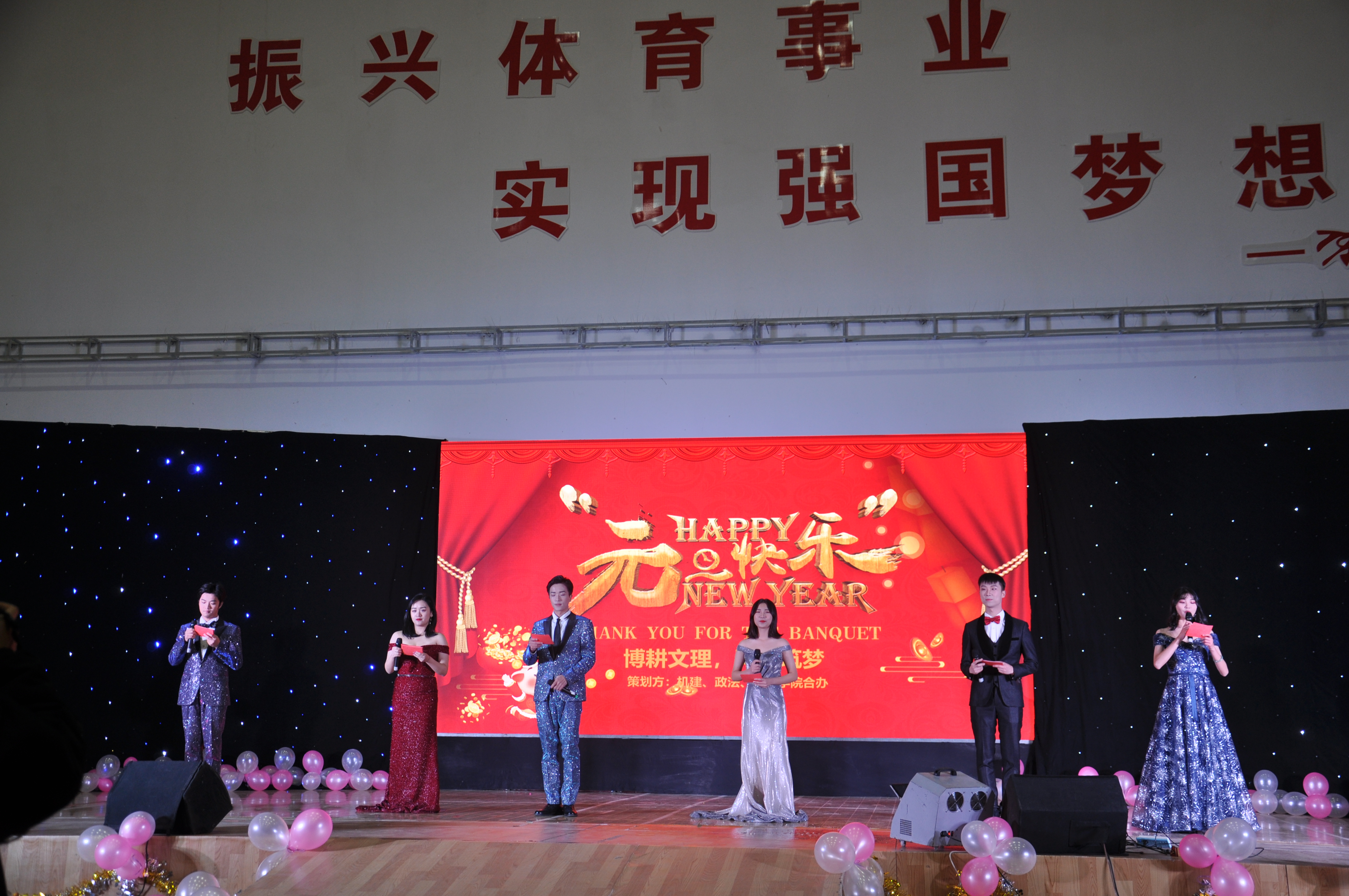 本次元旦晚会由政法、机建、体育三个公司联合举办,于2019年元月2号在和泺楼体育馆一楼大厅隆重举行。本次元旦晚会的主题是“博耕文理,同心筑梦”,这象征着文理学子始终以“融文汇理”为目标,以“立德树人”为导向的价值追求,同心共谱文理新篇章,合力共创文理新奇迹!莅临晚会的领导和嘉宾有江汉大学文理公司党委书记肖静、员工处处长曹灵海、伟德bv国际体育官方网站经理李蔚、伟德bv国际体育官方网站副经理陈海峰 、机建公司经理李继高、体育公司经理程锡森、体育公司副经理冯岩、伟德bv国际体育官方网站综合办公室主任刘超、机建公司综合办公室主任徐永辉、伟德bv国际体育官方网站分团委书记杨帆等诸位老师,以及此次晚会晚会赞助商双创磁场重创空间董事长伊兆奇先生、法律龙图武汉分校董事长李哲先生、副董事长桂鹏先生。