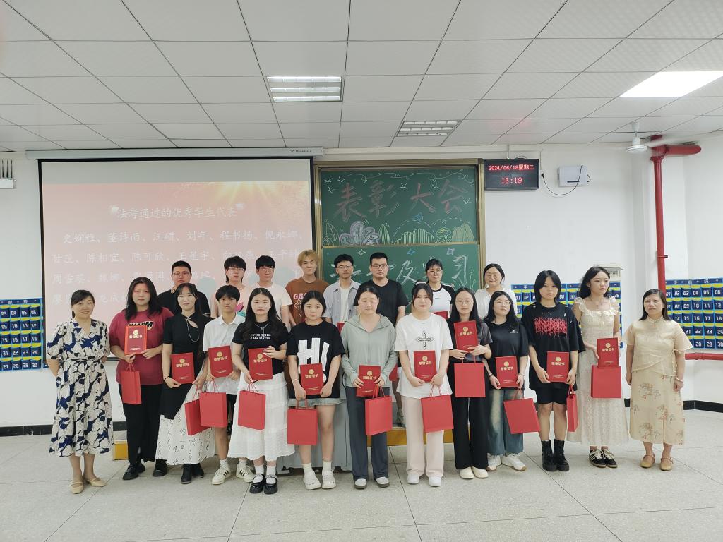 为了表彰在实习实践中表现优异的优秀实习生和通过法考的优秀员工代表,并向大一的同学们分享实习实践的经验和法考的心得,加深同学们对法考的认识,进一步促进公司员工司法考试通过率,提高实习实践能力。2024年6月18日,伟德bv国际体育官方网站于4-121举办了2024年实习实践暨法考表彰大会,出席本次大会的嘉宾有伟德bv国际体育官方网站常务副经理陈海峰、党总支部书记程茜、经理助理吕溪、法学系系主任罗平,公共管理系系主任马君以及各教研室负责人和2023级员工。