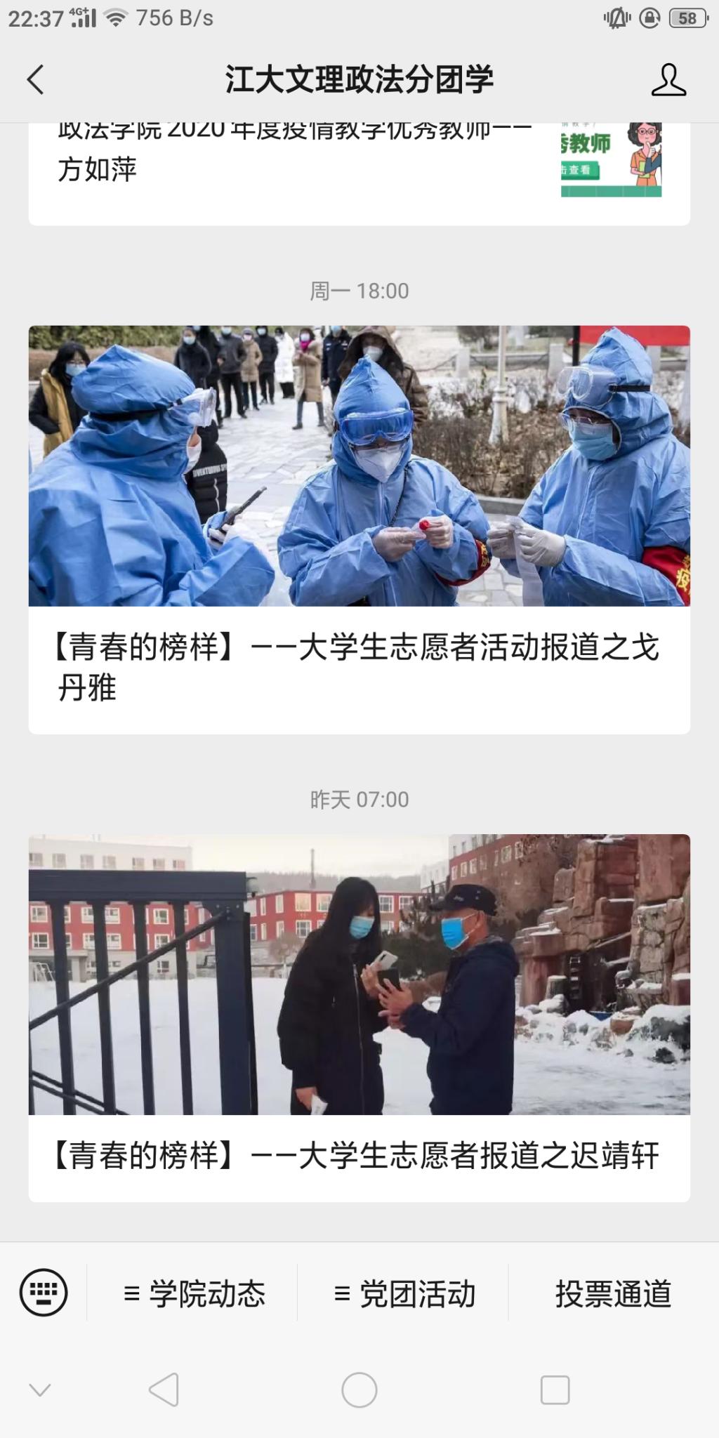 “当前是疫情防控关键时期,全校严守冬春季疫情防线,思想上、行动上决不能有丝毫侥幸和松懈。”为夯实员工安全教育之基,为疫情防控贡献出一份力量,伟德bv国际体育官方网站的领导及辅导员“防患于未然”,从放假前到今,缜密部署,科学安排,组织和策划了一系列寒假思政工作”。各年级辅导员从线下开展主题班会到召开线上主题班会,继而同学们积极参与抗疫志愿活动再到参加社会公益志愿活动,最后到伟德bv国际体育官方网站开展“青年的榜样”的评选活动,只为让更多员工从这一系列寒假活动中筑牢安全意识,充实丰富好寒假生活。