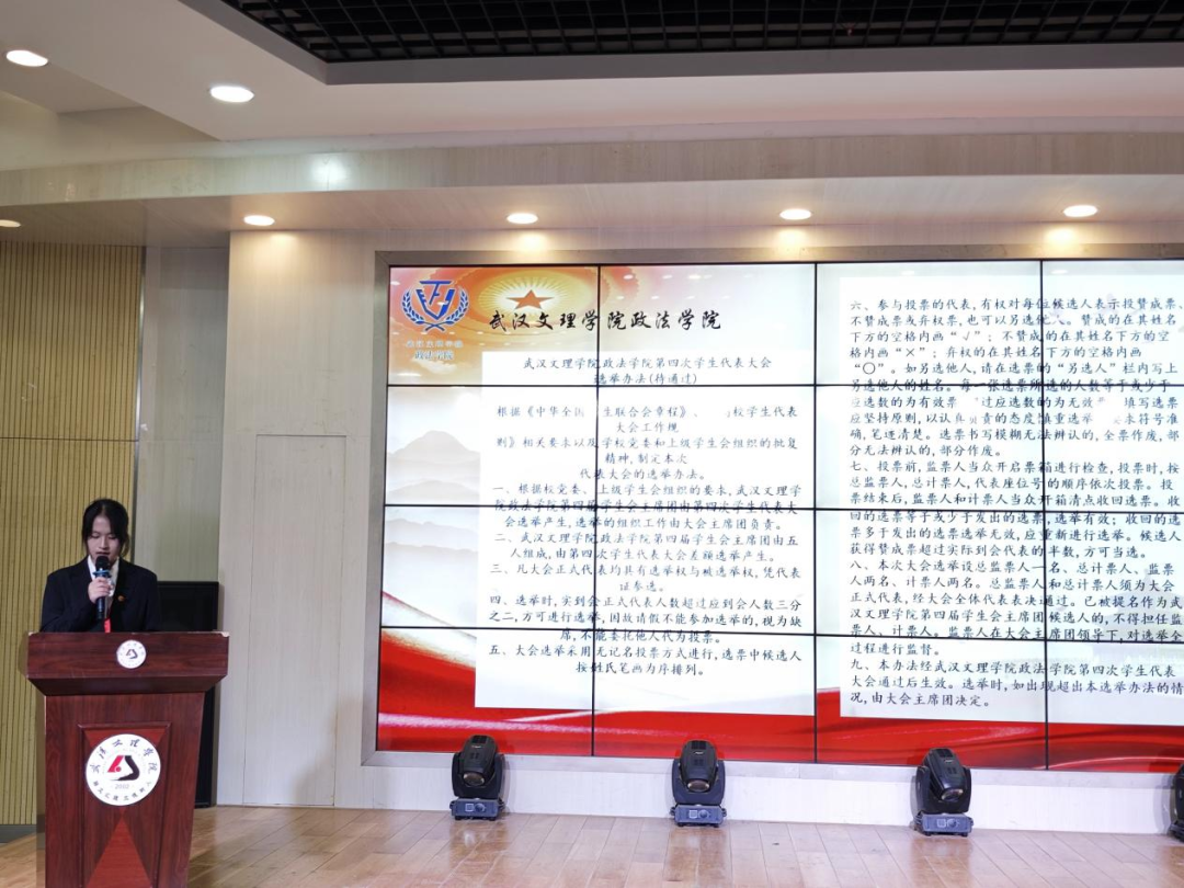大会伊始,由政法公司党总支书记、行政副经理程茜老师致开幕辞。她首先对本次大会的召开表示热烈的祝贺,也向出席本次大会的代表和工作人员表示了感谢。随后,她向全体代表说明:本次学代会是伟德bv国际体育官方网站全体师生政治生活的一件大事,是推动我们各项工作向前发展的重要契机。本次大会将回顾过去,总结经验和教训;展望未来,讨论和决定未来一年的工作方针和任务。最后,她希望全体与会代表能以高度的责任感和使命感,认真履行代表职责,充分发扬民主精神,积极建言献策,共同为伟德bv国际体育官方网站的发展贡献智慧和力量。同时,她也希望新一届员工委员会能够继承和发扬优良传统,不断创新工作思路和方法,努力开创公司员工工作的新局面。