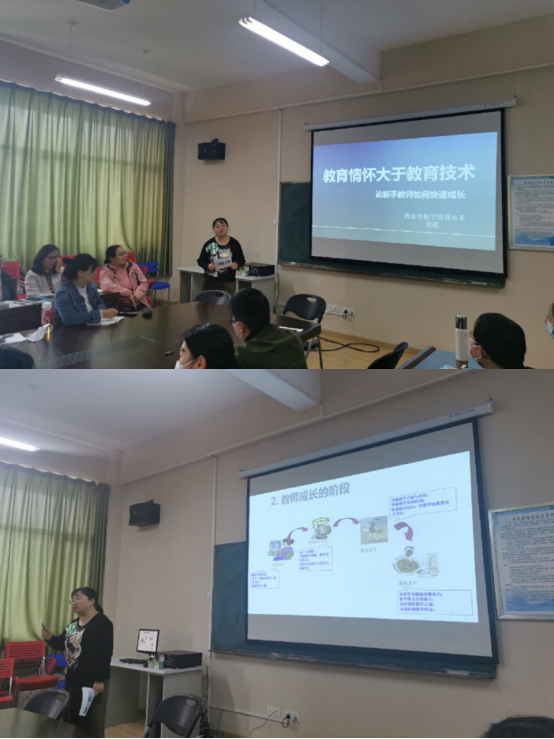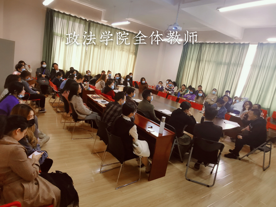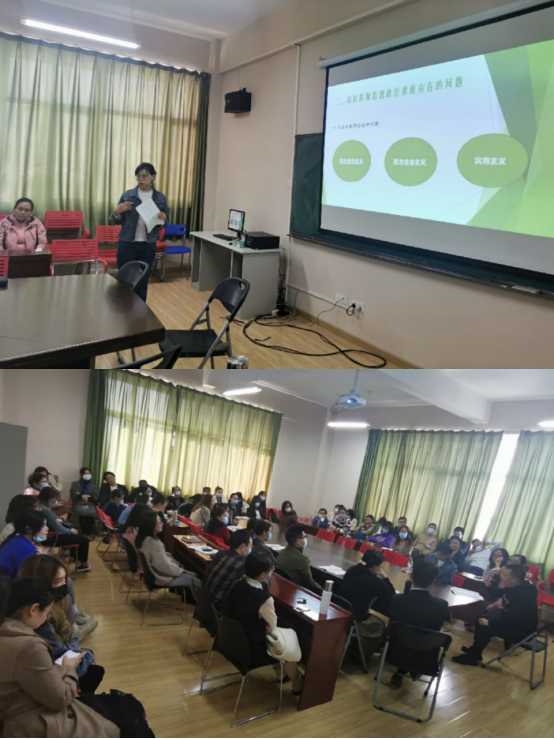然后由思政课部系主任曹卓老师从“提高高校教师思想政治素质的重要性”的角度向全体新老教师分享如何将爱国主义精神融入到我们的教学中。