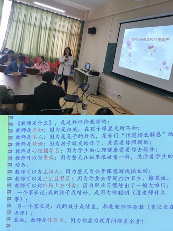 作为应用心理学专业系主任兼心理咨询师的王梦老师,以“教师心理健康的自我维护”为主题,结合民办教师心理健康水平的实际情况,从心理学专业角度出发,为帮助教师提高心理健康水平提供了丰富的实操知识。