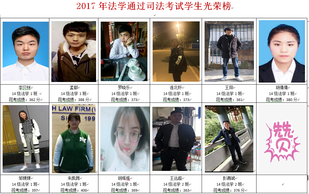 11月21日,2017年国家司法考试成绩正式公布,伟德bv国际体育官方网站法学专业14级学子有11名同学通过了司法考试,占全班同学的13%。其中,14级法学1班朱凯茜同学取得400分的高分。