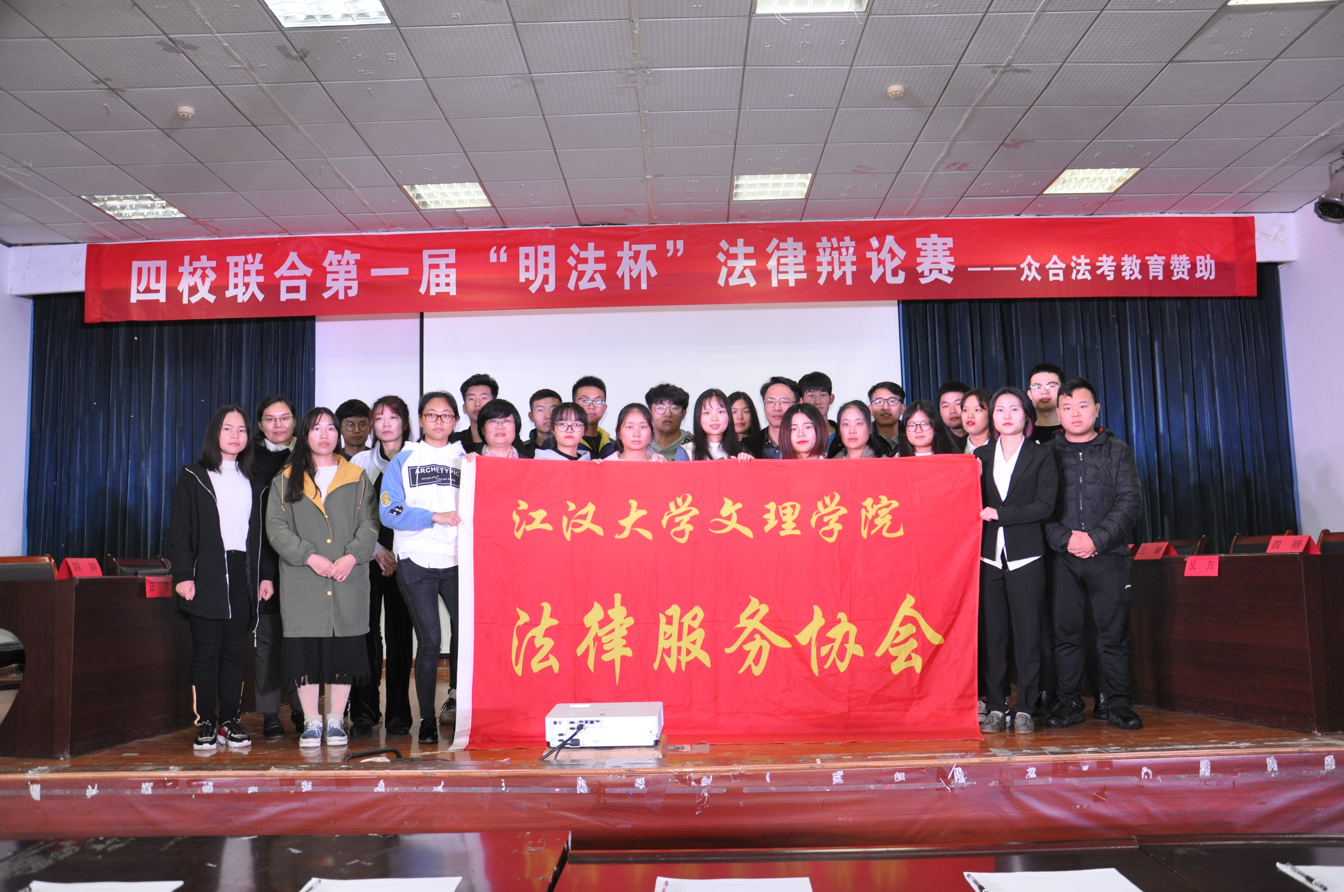 2018年11月10日,四校联合第一届“明法杯”辩论赛于武汉工程大学流芳校区模拟法庭举行,本届辩论赛由武汉工程大学法律援助中心主办,江汉大学文理公司法律服务协会、东湖公司文法公司辩论队、武汉体育公司辩论社承办。本次“明法杯”辩论赛共分为四场,采取一队四人4v4的标准辩论形式,以“以辩明法,以法明理”为主题两两展开辩论,优胜双方进入决赛,落败方进入逆袭赛,最终两两PK最终确定冠亚季军。江汉大学文理公司伟德bv国际体育官方网站李蔚、陈海峰、张卫容、吴蕾、田枭等老师全程参与,并进行指导。罗佳欣、程晨、王祺、胡琦、姜晶晶、陈丹六位辩手代表公司参与此次辩论。公司法律服务协会30余名员工作为观众到场学习,并为其助威。