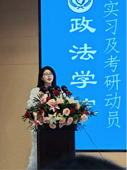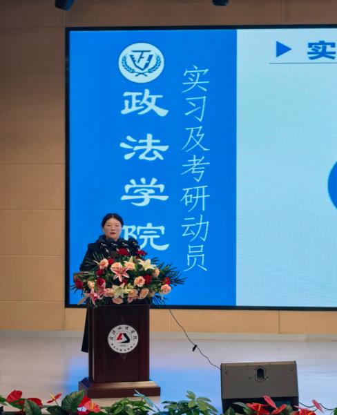 大会第二项,伟德bv国际体育官方网站法学系理论法学教研室主任江莲老师作法学专业考研动员。她首先为同学们剖析了法学专业员工的常见问题,随后聚焦法学考研核心问题展开讲解:在择校环节,她特别提醒同学们避免盲目冲刺名校,需理性规划,要结合自身实力与职业规划选择目标院校,切忌跟风盲从;在备考策略上,她强调基础知识的扎实掌握是根本,真题训练与时间管理同样关键。她建议同学们制定科学的复习计划,分阶段推进,保持良好心态,避免焦虑内耗。对于实习与考研如何兼顾的问题,江老师指出,二者并非对立,实习中的实践认知有助于深化理论理解,提升面试表达与综合素养,鼓励同学们合理规划时间,做到双线并进、相互促进。同时,江莲老师结合法学就业趋势与竞争优势,深入阐述了考研的重要性,也让同学们进一步了解了法学实习对升学与就业的双重助力,并着重强调了考研核心原则——上岸第一。