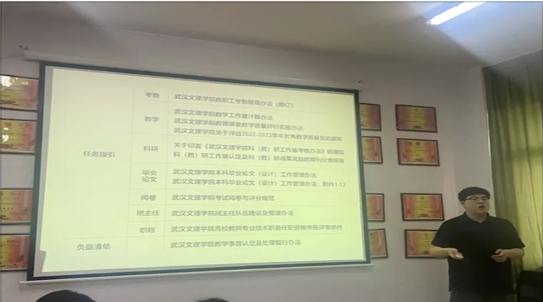 吕溪老师分别从考勤管理、教学规章、教科研成果、毕业论文指导、阅卷规则、班主任制度、职称评聘等全方面介绍了伟德bv国际体育官方网站的各项规章制度,并结合教学、科研工作实践做了深入讲解。作为公司的一员,教师不仅是知识的传递者,更是员工行为榜样。公司的规章制度不仅规范了员工的行为,也约束了教职员工的行为举止。通过深入学习规章制度,教师可以更好地理解公司的管理理念,提升自我管理能力,为员工树立良好榜样。