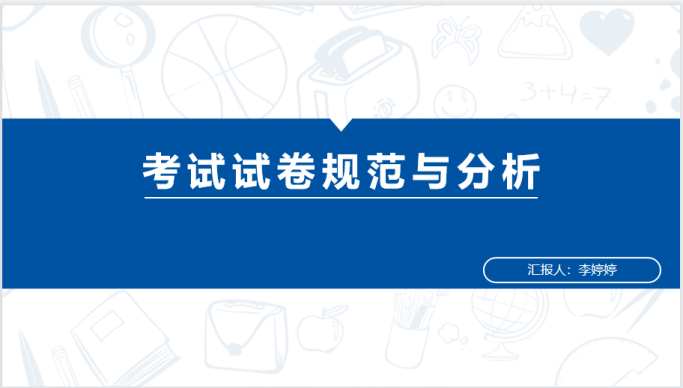 李婷婷老师以“考试试卷规范与分析”为主题,从试卷命题规范、阅卷标准、期末考试试卷分析以及期末考试试卷装订四个部分为大家进行详细介绍。