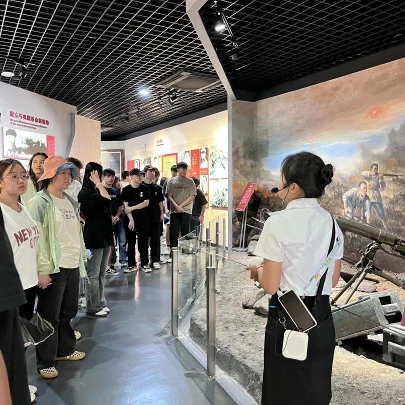 劳动教育的最后一天,同学们早早起床前往新四军第五师历史陈列馆进行参观学习。在老师的带领下,同学们列着整齐的队伍在革命文化广场上进行升国旗仪式,全场庄严肃穆,大家高声齐唱国歌,国旗高高飘扬在陈列馆门前。升旗仪式结束,同学们列队进入展馆,向革命先烈敬献花篮,并向先烈们深深地三鞠躬。随后,大家分批参观,听取引导人员讲解姚家山的历史、解说革命事件、介绍英雄先烈事迹。游览学习结束后,同学们在展馆门前挥舞旗帜,在那一抹青春洋溢的色彩中,仿佛又看到了先烈们的英勇身姿,又回到了革命抗战的年代。经历了此次红色革命教育的洗礼,相信同学们今后会更敬重革命先烈,更加坚定铭记历史的初心。