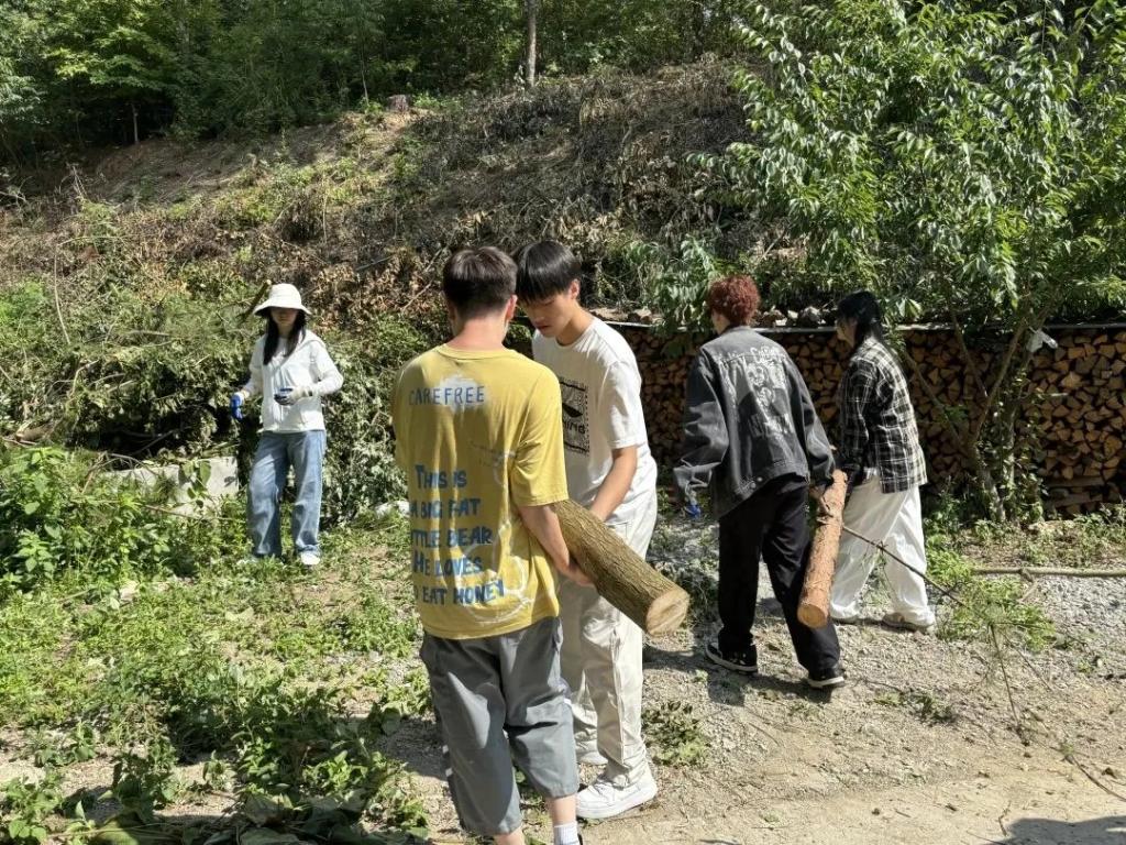 此次“移花接木”中,同学们深入自然,上山入林、砍树拾木。拿着手套、木锯、斧头等劳动工具,分成若干小组,在排长的指示和安排下拾柴、劈柴、运柴。为了寻找和挑选合适的柴火,同学们在确保自身安全的前提下,将柴火劈成合适大小,以便用于灶台起火。通过亲身体验劳动的过程,培养了他们对自然环境的尊重,增强了环境保护意识,同时也锻炼了他们的体能和团队协作精神。