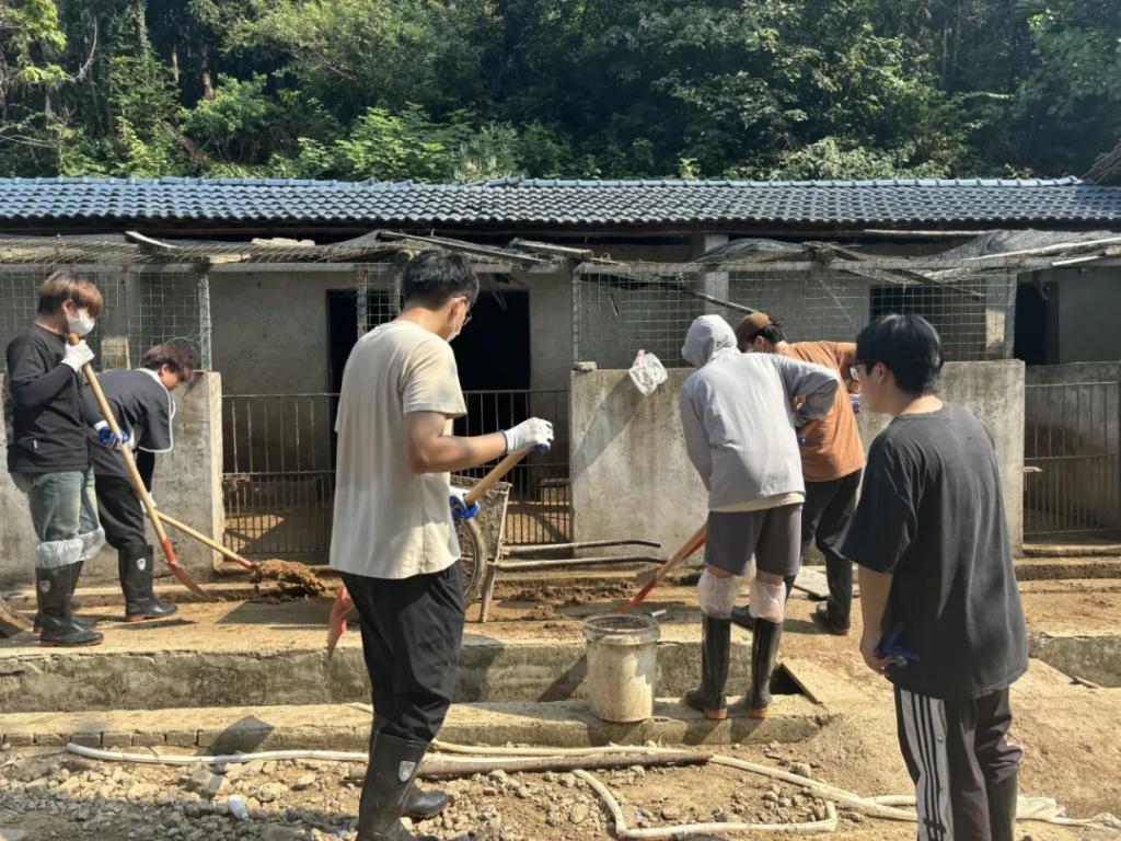 一屋不扫,何以扫天下。同学们在六畜兴旺这个环节进行了猪圈清扫,为山庄饲养的猪畜提供更干净舒适的生活环境。同学们分工明确,男生主要是铲运猪畜生活环境内的垃圾,女生主要运用高压水枪冲洗猪圈、清理路面残留垃圾。这个过程不仅提高了同学们的团队协作能力,也增强了他们之间的默契度和凝聚力。
