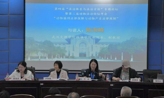 此次活动由上海伟德bv国际体育官方网站法律公司、中南财经政法大学动物保护法制研究所、中南财经政法大学环境资源法研究所主办,上海政法公司党内法规研究中心、上海伟德bv国际体育官方网站研究生处、山东大学动物保护研究中心协办。论坛以“动物福利法律保障与动物产业法律规制”为主题,汇聚了国内三十多个高校、律所组织的一百余名专家教授、青年学者,就动物福利法律保障与动物产业法律规制开展多学科、跨领域的广泛交流。伟德bv国际体育官方网站常务副经理陈海峰、法学系经济法学教研室主任田菲、法学教师万昭晖、郑泽蓉受邀参加了此次年会。